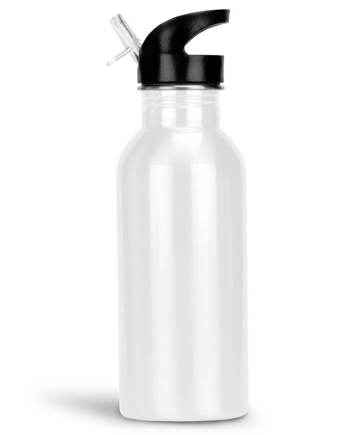 Aluminium Straw water bottle 600ml – White White Aluminium 600ml water bottle. Each water bottle comes with a flip top straw for easy sipping. A straw insert keeps your favorite cold beverage flowing. Gloss finish Flip top straw Material : Aluminium Dimensions : 600ml