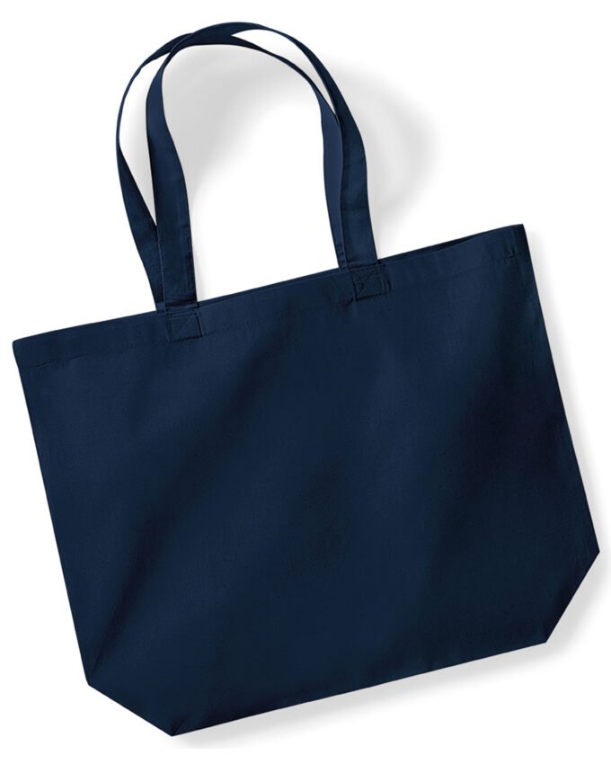 Crafted using a soft-touch premium organic cotton, the maxi tote is a stylish addition to any eco collection. A simple design with a superior print surface. Lightweight with a large capacity, the maxi tote is ready to hit the shops. Specification: 100% cotton. 200gsm thickness Premium cotton for enhanced durability. Handle length 58cm Capacity 18 litres. Can be carried by hand or over the shoulder Washing Instructions: Sponge clean only